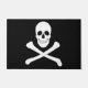 Esta design apresenta uma bandeira tradicional voada por piratas no século XVIII; a bandeira é chamada de Jolly Roger. Apresenta um crânio e ossos cruzados num fundo preto. A bandeira foi originalmente concebida para intimidar inimigos, mas pode agora ser usada para tornar mais excitantes os partidos e outros eventos! É um design histórico que ainda é instantaneamente reconhecível. Me traga timbres, companheiros!