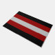 Esta design apresenta a bandeira do satanismo, que é um grupo de crenças ideológicas e filosóficas baseadas na Satã. A prática religiosa moderna do satanismo começou com a fundação da Igreja da Satã em 1966, embora existam alguns precedentes históricos. Acusações de que vários grupos têm praticado o satanismo foram feitas ao longo de grande parte da história cristã. Os satanistas teístas veneram a Satã como uma divindade sobrenatural, vendo-o não como onipotente, mas como preferencialmente como patriarca, enquanto os satanistas ateístas consideram a Satã apenas um símbolo de certos traços humanos.