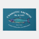Um Salmão de Sockeye de tom azul com texto que diz "Cyanotic Salmon Bar & Grill Kenai, Alaska" e "Combate ao Descanso e à Relaxação da Pesca. A pesca do salmão é muito popular, muito popular no Alasca. Imaginem centenas de passadores, quase ombro a ombro, alinhando ambos os bancos de um riacho tentando evitar linhas cruzadas com todo mundo na esperança de pousar um grande salmão. Isso é pesca de combate. Depois de um dia, pegue um pouco de R&R no mítico Salmão Cianotico no Kenai. Contos de pesca contados lá...algum verdadeiro.