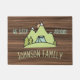 os campistas felizes de acampamento dos campistas da barraca de madeira rústica personalizaram barracas que feitas sob encomenda do nome de família da grão do woold nós dormimos ao redor