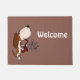 Cão de filhote de cachorro bonito do cão de Basset do divertimento que joga o saxofone com os ossos de cão como o doormat original da arte das notas.