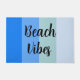 Legal padrão azul e verde claro de listras e um texto personalizável dizendo: "Vibes de praia". Ajustado um estilo marinho alegre.