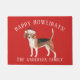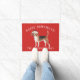 Uma porta de Natal adorável, com um Beagle vestindo um chapéu santa em um fundo vermelho festivo.