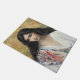 Esta design apresenta uma pintura do artista russo Konstantin Yegorovich Makovsky (К о т а с н т и́ н н Е г о́ р о в и ч М а к о́ as в, с as к, и as й, as as as as É um retrato de uma mulher bonita que está vestida elegantemente e tem cabelos pretos longos e fluidos.