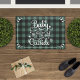 Esta porta festiva para os feriados mostra "Baby it's Cold Outside" em letra branca com floco de neve e sotaques estelares, e um design de borda de rolagem. Um padrão de verificação de xadrez verde e preto de búfalos é incluído como fundo.