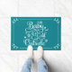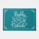 Esta porta festiva para os feriados mostra "Baby it's Cold Outside" em letra branca com floco de neve e sotaques estelares, e um design de borda de rolagem. Cor azul-lacrimogêneo e branco.