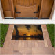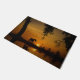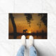 Um espantoso tapete de porta com cores quentes a sudoeste excelente, um cavalo por uma lagoa de água com pássaros refletidos na água. Um tapete de porta de cavalo super bonito.