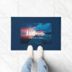 Uma porta de boas-vindas com uma linda fotografia. Um lugar cênico. Um lago tranquilo com uma doca de madeira que se estende para fora. Definir o sol fornece lindas cores no céu, vermelho e azul vibrantes.