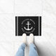 Matriz de porta com âncora náutica branca e texto personalizável "bem-vindo a bordo" e seu nome de barco flanqueado por bordas de corda. Design branco sobre fundo preto ou colorido personalizado.