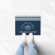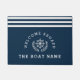 tapete de barco com faixas azuis e detalhes de nome personalizados e elementos náuticos A cor e o texto são editáveis.