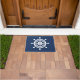 Faça uma declaração com esta porta náutica azul Marinho personalizada! Com design de roda de um navio de na moda, este tapete dá boas-vindas aos convidados a bordo com o nome do seu barco e o ano. este tapete único é a adição perfeita ao seu porto, à casa de barco ou à frente do lago. Personalize-o com o nome do seu barco para um toque verdadeiramente especial.