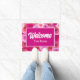 Tapete Bem-vindo à Entrada Personalizada com Flores Rosa