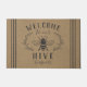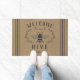 Bem-vindos a convidados com este bonitinho tapete de abelha que apresenta uma ilustração do estilo vintage da abelha de mel adornada com folhas botânicas e detalhes de cordas. "Bem-vindos à nossa colmeia" aparece em cartazes de carvão. Personalize com o seu nome de família na parte inferior.