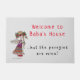 Um belo tapete de boas-vindas para a casa de Baba com uma menina vestida tradicionalmente abraçando sua tigela de perogias.