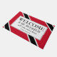 Na moda, tapete de boas-vindas patriota-trinidadiano com a redação WELCOME & BE BLESSED ALL QUE ENTER AQUI (EXCETO TRESPASSERS). O fundo é a bandeira de TRINIDAD & TOBAGO. Todo o texto é PERSONALIZÁVEL para que você possa alterar o texto de acordo com suas necessidades, por exemplo, adicionar nome da família, lema da família, citação inspiradora. Escolha entre uma ampla seleção de designs de sinalizador Trinidad por Designs Bereanos.