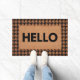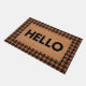 Uma porta preta e bronzeada, inspirada em vintage, com a palavra "OLÁ" em um design lúdico, mas ousado. Perfeito por criar uma vibração amigável e acolhedora à porta.
