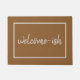 É engraçado porque é verdade. Você é bem-vindo. Este tapete de porta humorístico é para introvertidos, antissociais, e socialmente incômodos, que recebem convidados com um pouco de relutância e talvez até alguma ansiedade. Tipografia simples e elegante em um fundo bronzeado e colorido. Inesperado, estranho e meio sarcástico.
