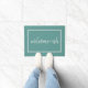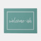 É engraçado porque é verdade. Você é bem-vindo. Este tapete de porta humorístico é para introvertidos, antissociais, e socialmente incômodos, que recebem convidados com um pouco de relutância e talvez até alguma ansiedade. Tipografia simples e elegante em um fundo verde de cor sage/menta. Inesperado, estranho e meio sarcástico.