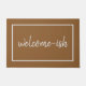 É engraçado porque é verdade. Você é bem-vindo. Este tapete de porta humorístico é para introvertidos, antissociais, e socialmente incômodos, que recebem convidados com um pouco de relutância e talvez até alguma ansiedade. Uma tipografia simples e elegante em um fundo esticado, colorido de um casaco. Inesperado, estranho e meio sarcástico.