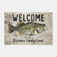 Bem-vindo à Página Inicial "Seu Nome Familiar", ou mude para a Casa. Um tapete de boas-vindas para a família que ama pescar. A design apresenta um grande bass de boca de lunker.