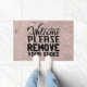 Bonito tapete rosa de boas-vindas. Por favor, remova calçados.