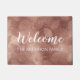 Bem-vindo Rosa Esmagado - Rosa Dourado Outono ou Folhas de outono (folha) Nome da Família Dorm Room ou Home Door Mat. A Porta Mat faz o presente perfeito para um novo dono que ama uma folha metálica rosa. Entre em contato com o designer para obter itens correspondentes.