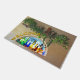 Bem-vindos aos seus convidados com um tapete de boas-vindas único! Esta porta apresenta uma fotografia de uma janela de meia lua com vários tamanhos e cores de garrafas e vasos de vidro. As casas verdes saudáveis pendem de uma prateleira acima da janela arcaica. Preencha o texto, remova o texto ou clique em personalizar para selecionar um estilo de fonte, tamanho e cor preferidos. Fotografia ©Patricia AZ Phillips.