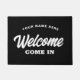 Bem-vindos, entrem na porta preta personalizada para compro ou casa. Adicione seu nome de empresa, nome de empresa, nome de família, etc. personalizado. design de tipografia na moda. Um tapete personalizado para entrada, abertura de porta de casa, escritório, prática, entrada de loja e outros lugares.