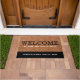Bem-vindos à porta da casa de Nana e papai com um impressão de coir rústico para um decor de entrada de uma fazenda rural.