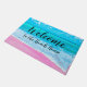 Um tapete de boas-vindas personalizado com uma foto de uma bela praia de água turquesa com areia rosa, e as palavras Bem-vindo à Casa da Praia em preto, então ela realmente se destaca. Perfeito para sua casa de praia ou propriedade alugada,