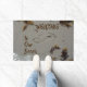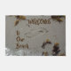 Uma única Boas-vindas à nossa porta de Praia com a imagem fotográfica de pegadas atravessando caminhos em uma praia arenosa com uma dica da maré recebida. É um tapete de porta costeira divertido e acolhedor que é perfeito para uma casa de praia ou um telhado de praia que pode ser personalizado. Esta é a fotografia original do litoral por JLW_PHOTOGRAPHY.