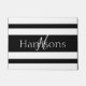 Um presente de excelente para um amigo, esta porta de boas-vindas apresenta um design listrado preto e branco escreve seu nome no meio com seu monograma inicial sobreposto. O texto está em branco. Compre seu tapete de boas-vindas personalizado hoje! Se precisar de assistência, envie-me um e-mail para rhondajones81@gmail.com. Listras: AMBilustrações http://www.etsy.com/shop/AMBillustrations/