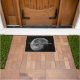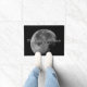 Foto branca e negra da lua em toda a sua glória com as palavras "Bem-vindos Terrenos" para cumprimentar todos os seus amigos e visitantes em sua casa. Para o amante de tudo astronômico. Pode ser usado dentro ou fora. Foto de LD Gonzalez.