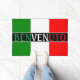 Este tapete de porta de boas-vindas personalizado apresenta a saudação "Benvenuto" impressa no centro. Benvenuto é a tradução italiana para "Bem-vindo" e é impressa nas cores da bandeira italiana. As três primeiras letras são verdes, as duas são brancas e as três últimas são vermelhas. A saudação é impressa na bandeira italiana. Felicite seus visitantes à sua casa ou empresa italiana. Você pode personalizar o tapete de boas-vindas para incluir o nome da sua família ou empresa ou outro texto personalizado.