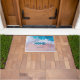 Uma vista aérea de uma praia rosa com água turquesa nas Bermudas. Esta fotografia é o pano de fundo perfeito para uma porta que decora a sua entrada. Adicione seu nome a ele e torne-o exclusivamente seu. Você pode alterar as fontes, as cores da fonte e a mensagem.
