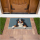 The cool slate blue background adds a calm and elegant touch, perfect for welcoming home entryways. With extra space at the top and bottom, this design is ideal for personalization—add names, welcome messages, or custom text to create a unique dog-themed doormat or thoughtful gift.