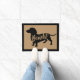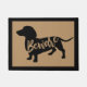 A silhueta do preto do Dachshund de Minimalistic com palavra tipográfica "Beware".