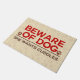 Beware do cão. Quer afagos. Design engraçado das citações do cão. Cão cómico que diz para proprietários do cão. No texto vermelho corajoso com pata marrom imprime. A paródia engraçada/paródia do sinal de advertência do cão.