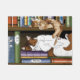 Dois gatos dormindo numa estante de livros temáticos de gatos. Leitor de livros ávido e amoroso de gatos.