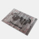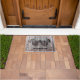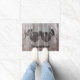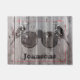 Uma porta rustica de boas-vindas impressa com um par de binóculos de observação de pássaros e dois Pica-Pau Pileados da floresta amontoados nas lentes binoculares. O presente perfeito para observadores de pássaros em todo lugar.