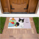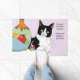 Gato preto e branco deitado no balcão da cozinha. O gato mijou a noite toda, sem motivo nenhum, e depois está entediado.