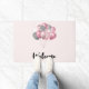 Uma porta de boas-vindas com uma ilustração de um monte de balões em cor rosa e cinza prateada.