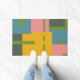 Coloque um tom de na moda começando na porta frontal com uma porta bloqueada por cor na mostarda, no aqua, verde, rosa e cinza. A design geométrica dá uma vibração moderna do século médio.