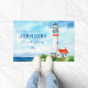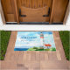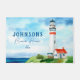 Blue Beach Coastal Ocean Welcome Doormat com um belo farol e o nome da família. Excelente para uma praia em casa ou como presente para amigos e familiares vivendo na frente do oceano.