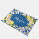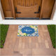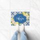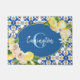 Novo Nome da Família Doméstica e Porta do Monograma. Fundo azul mediterrânico e azulejo amarelo. Pequena.