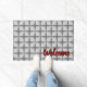 Boa vinda do vermelho em um fundo cinzento do teste padrão do diamante.