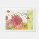 As flores podem dizer tão muitas coisas. Dê boas-vindas a seu convidado com este doormat colorido requintado da queda. Este design da dália pode ser personalizado para um presente especial extra, toda a ocasião. Botânico pintado mão meticuloso & folhagem de outono pelo judithchengart. Floral vibrante que resiste distante após a estação de folhagem de outono.