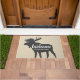 Grande doormat cinzento da silhueta dos alces com a palavra "boa vinda" no texto branco assim como no seu nome de família. Adicione alguns estilo e divertimento a sua entrada com este doormat corajoso rústico.