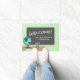 Este doormat da boa vinda da sala de aula caracteriza um gráfico da mesa de um professor acentuada com um globo, os livros, as maçãs e os lápis. O quadro oferece o texto feito sob encomenda para o nome do professor.