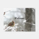 Fotografia de um assento cardinal fêmea em ramos cobertos de neve.